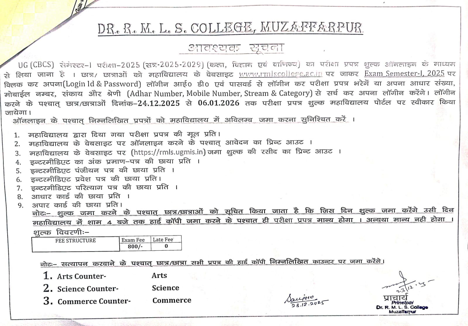 UG SEMESTER-I EXAM 2025 (2025-2029)